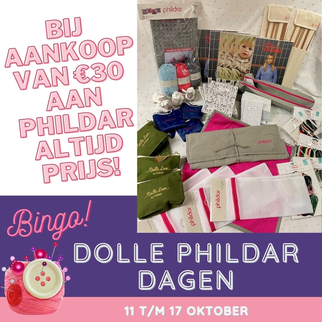 Naast het strooien van prijzen delen wij tijdens de dolle Phildar dagen ook elke dag een gratis patroon. Houd onze patronen pagina dus goed in de gaten. Kom jij een bingo bal trekken? Wij hopen u te verwelkomen in ons handwerkparadijs!