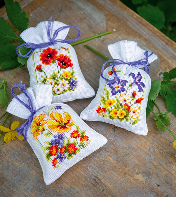 De Vervaco kruidenzakjes zijn geborduurd in kruissteek met telpatroon, aida borduurstof, DMC borduurgaren, telpatroon, borduurnaald en werkwijze.