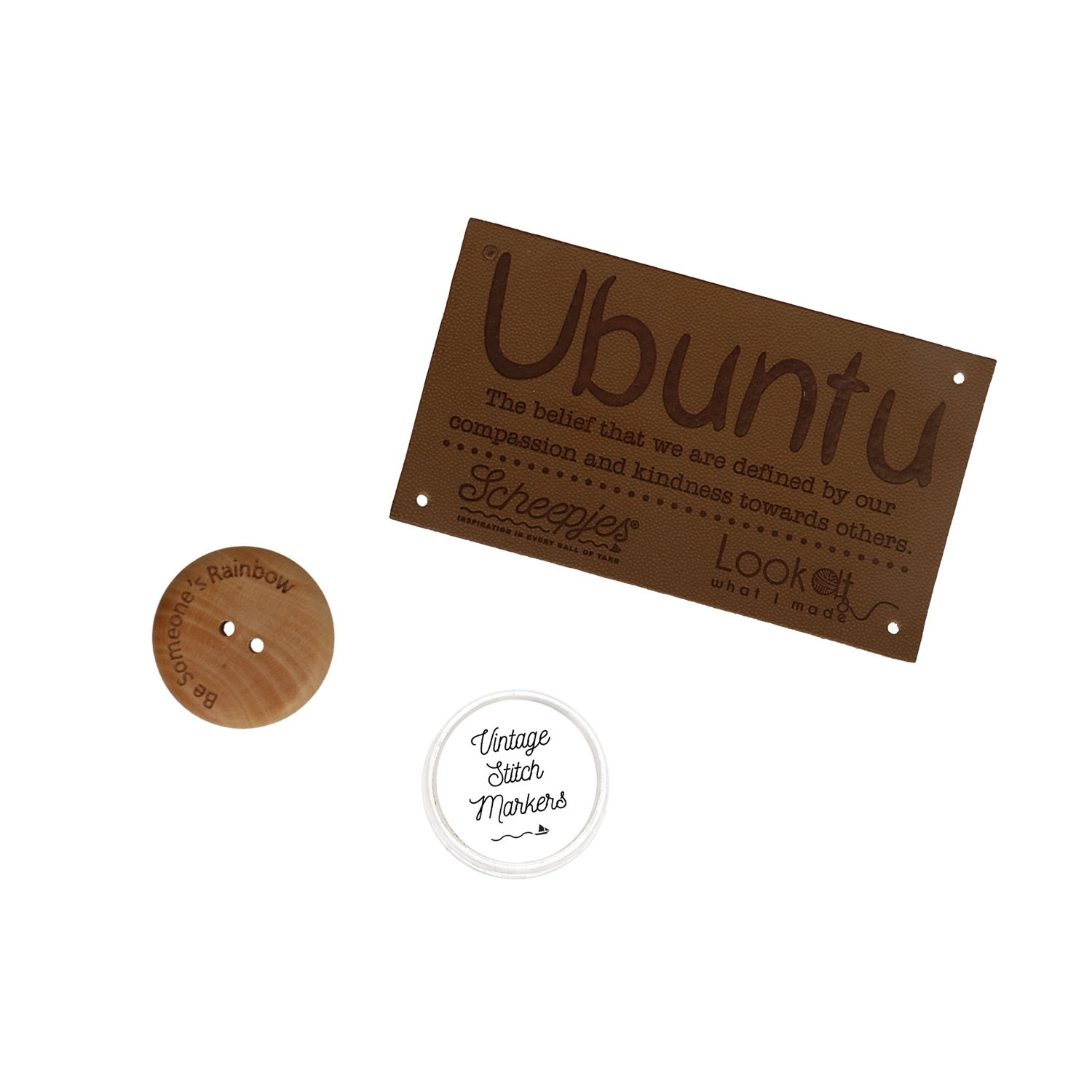 De Ubuntu CAL Kit Medium bevat: 31 bollen Scheepjes Stone Washed, officiële Ubuntu CAl vegan label, officiële Scheepjes Ubuntu CAL houten knoop, 1 set vintage stekenmarkeerders en 1 loom kit voor het maken van een mooi vriendschapsarmbandje, ontworpen door Dedri!