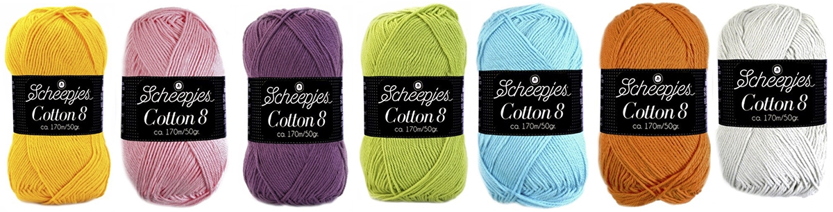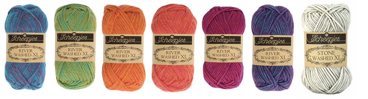 -Gebruikt garen: Scheepjes Cotton 8 (S) of Scheepjes Stone Washed (M) of Scheepjes Stone Washed XL en Scheepjes River Washed XL (L)
